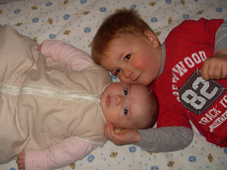 a couple of quick photos of my cuties to finish with - somehow, puglet is now over 3 months old! she had her vaccinations yesterday and had a huge sleep last night and is still asleep for her morning nap now. this is very unusual for her - she is a catnapper because of her reflux. but i am happy to take it for today!!! i think i will go and make a cuppa and sit and watch the little human with his play dough :)